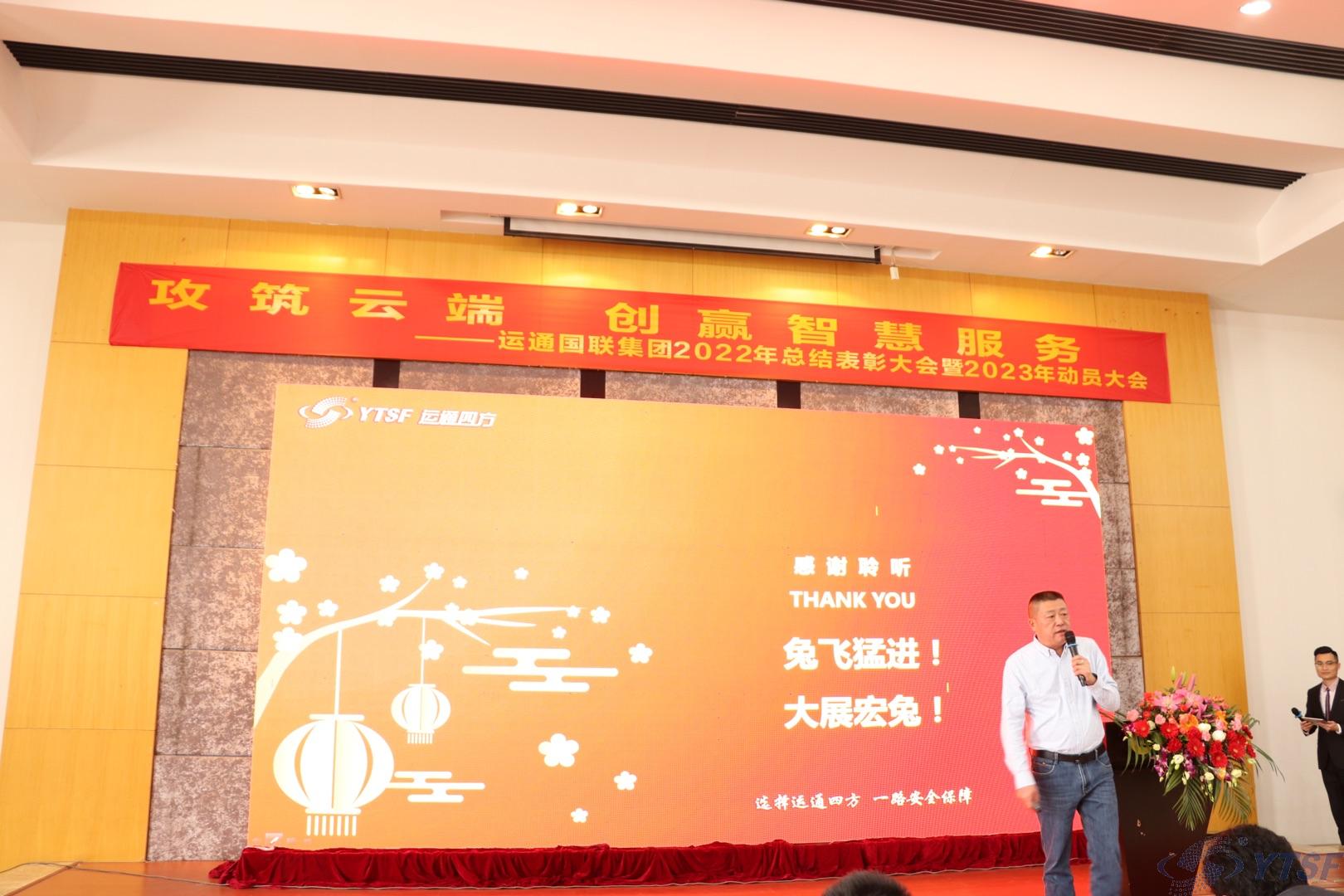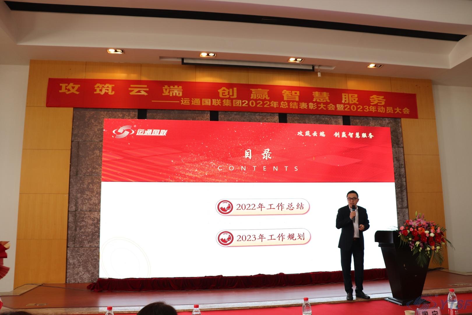 广东公司总经理王会星先生做广东公司2022年度工作总结及2023年度工作展望。近三年在疫情大环境的影响下,运通国联集团经历了不同的挑战。王总用运营数据展示了我们的专业性,2022年运通国联,智赋车行、通达四方,我们一直在不断向前进。